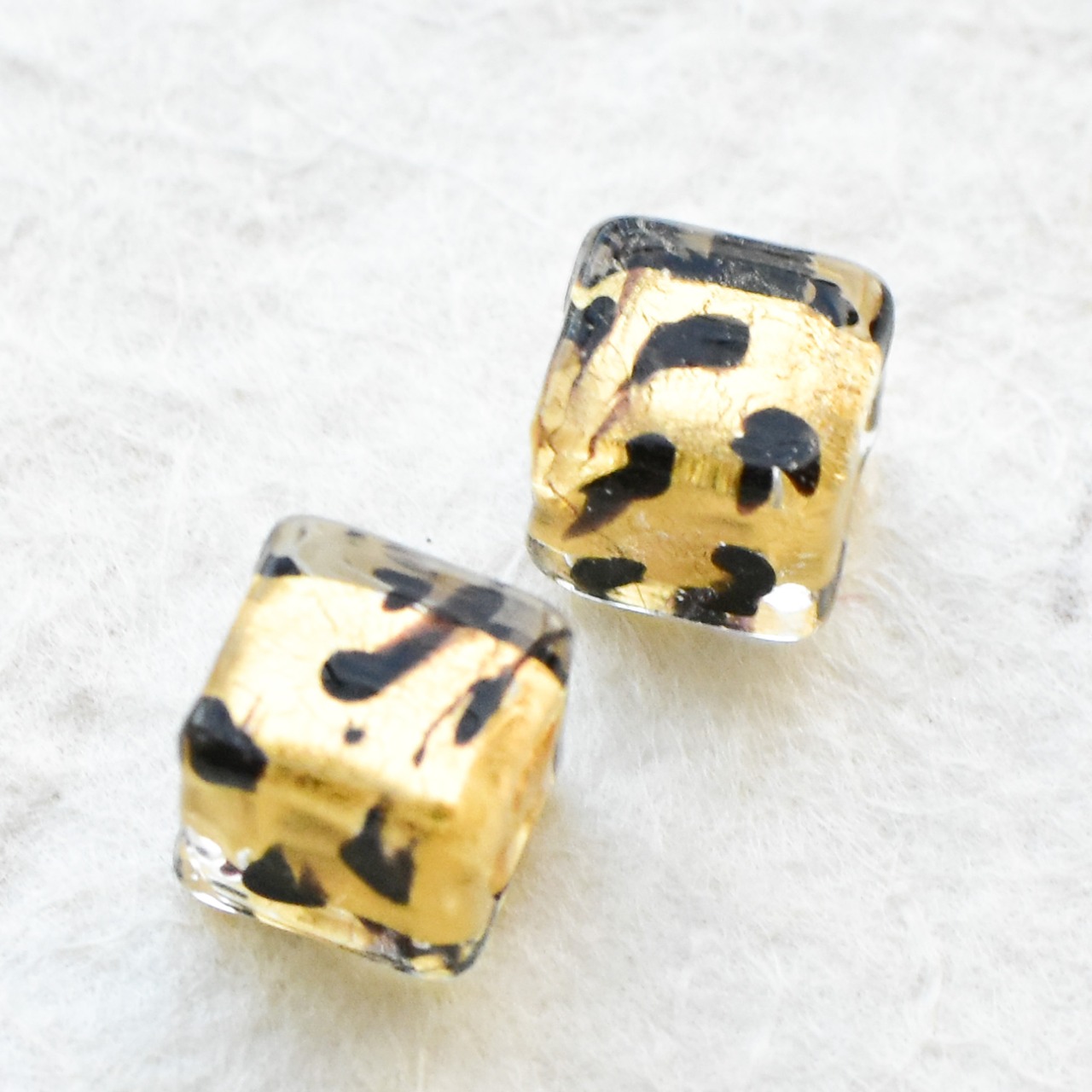 ベネチアンガラスビーズ キューブ型 ゴールドドット模様