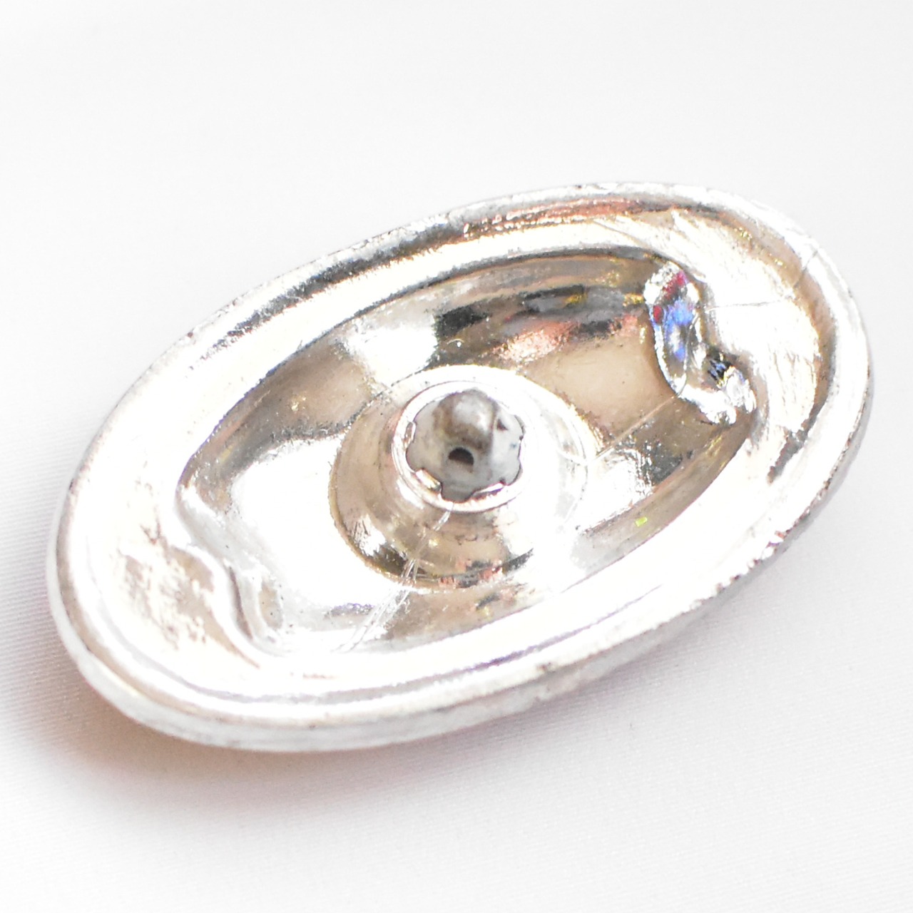 青/紫のオーロラ加工仕上げの透明クリスタル・ガラス製、裏面は、ボタンはシルバー色のメタリック仕上げです。