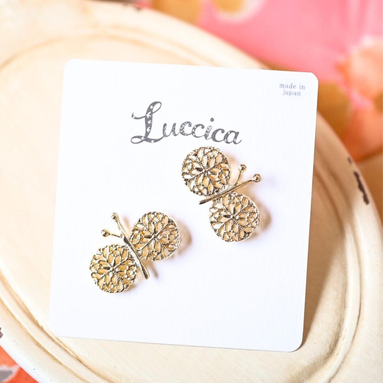バタフライのピンバッチブローチです。機械と手作業で丁寧に作られています。