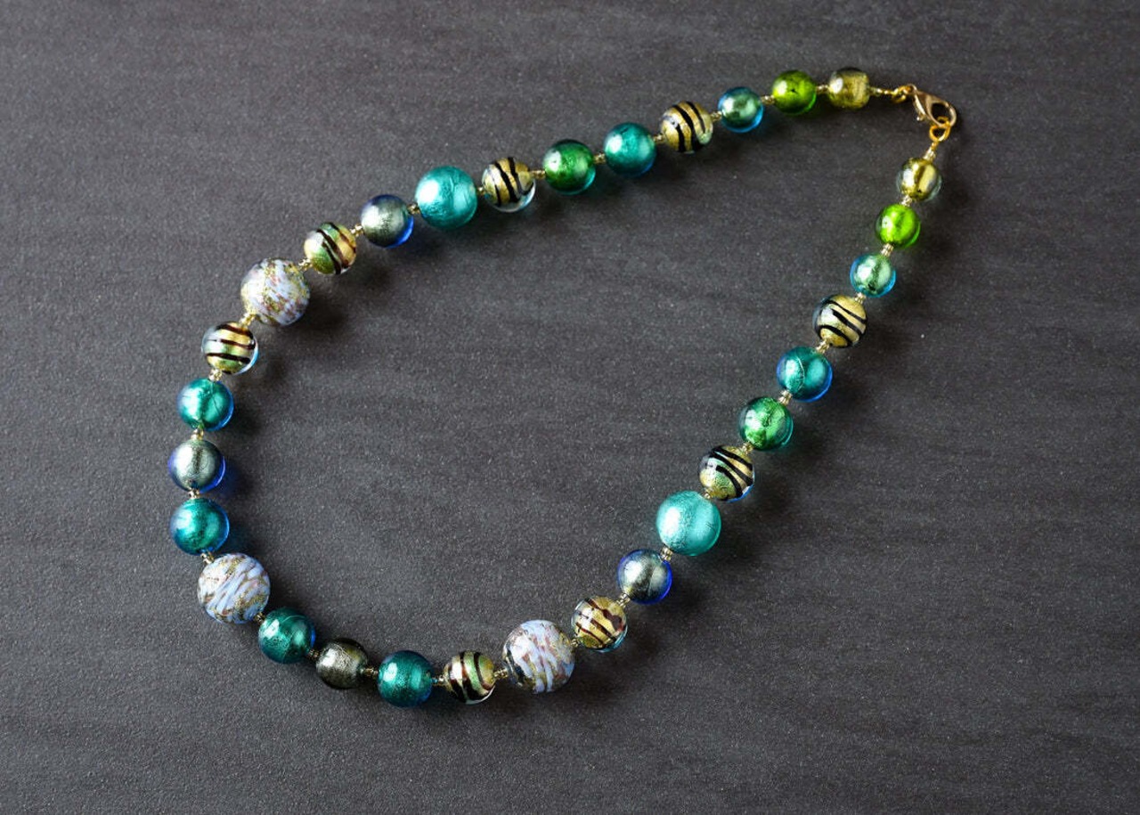 ぱっと見派手で、こんなの私に似合うかしら・・と思われる代表格のベネチアンガラスネックレス。