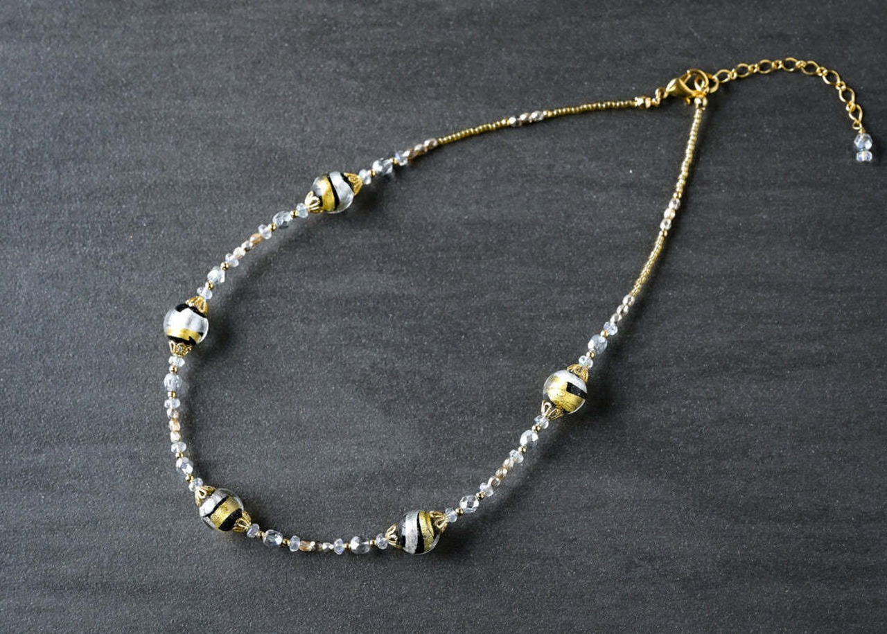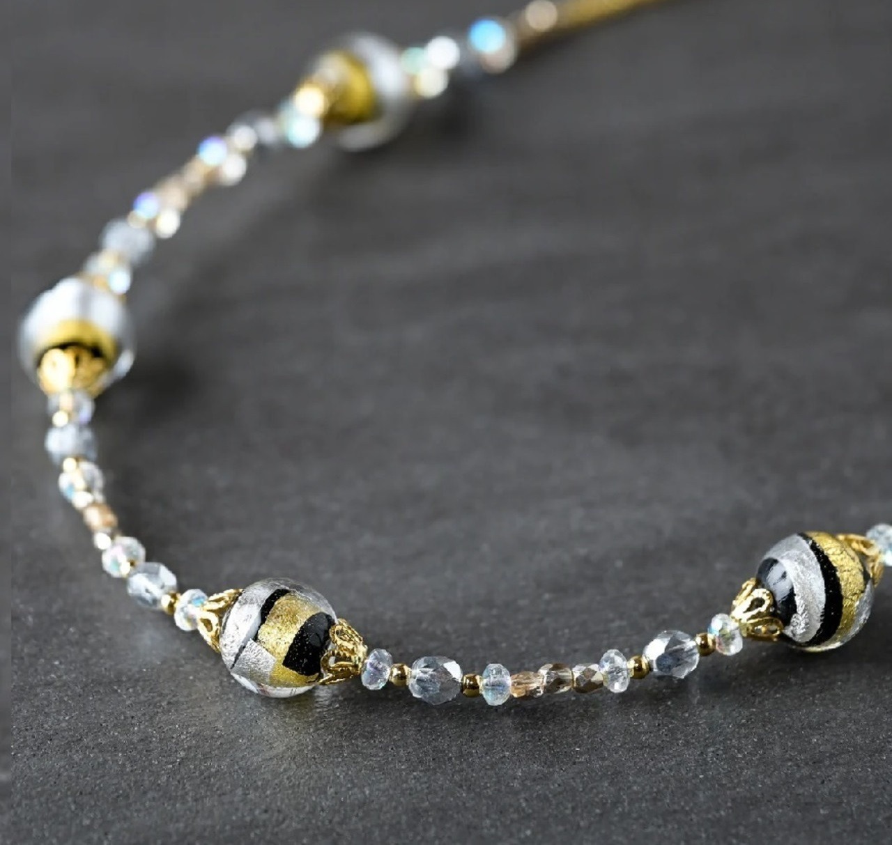 ゴールドの美しさがひきたてる ベネチアンガラスのネックレス