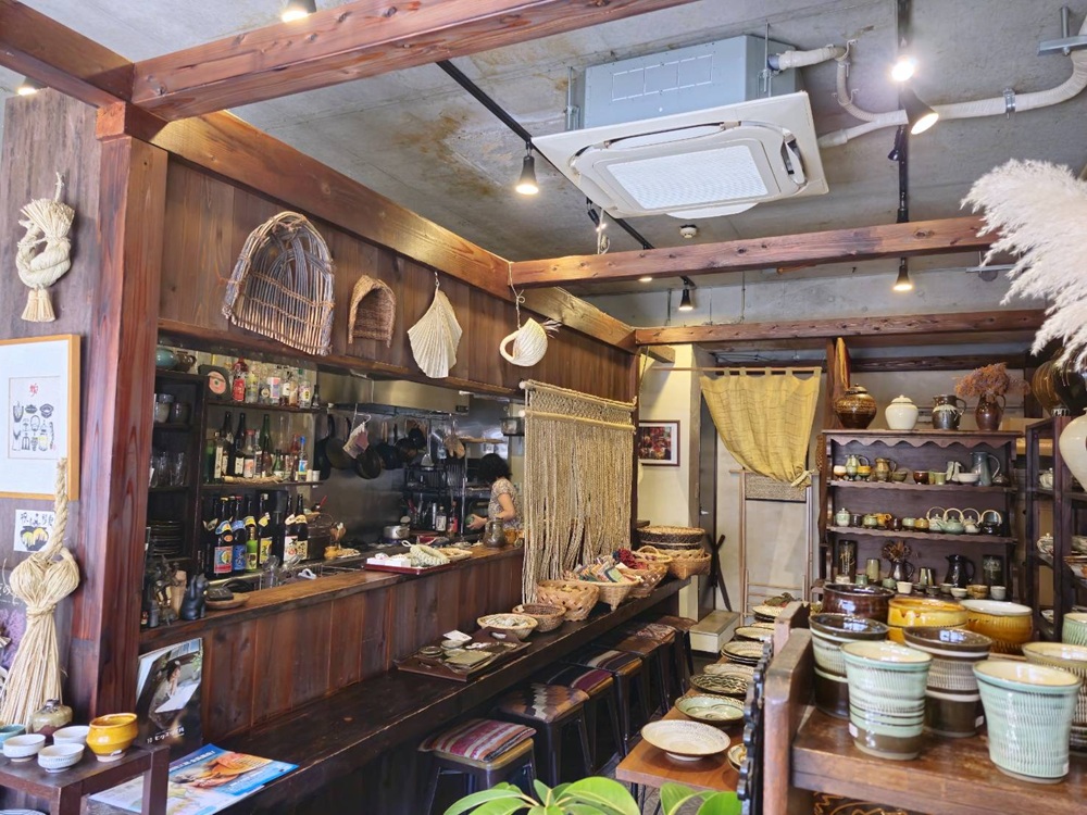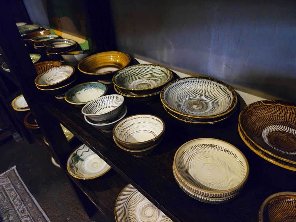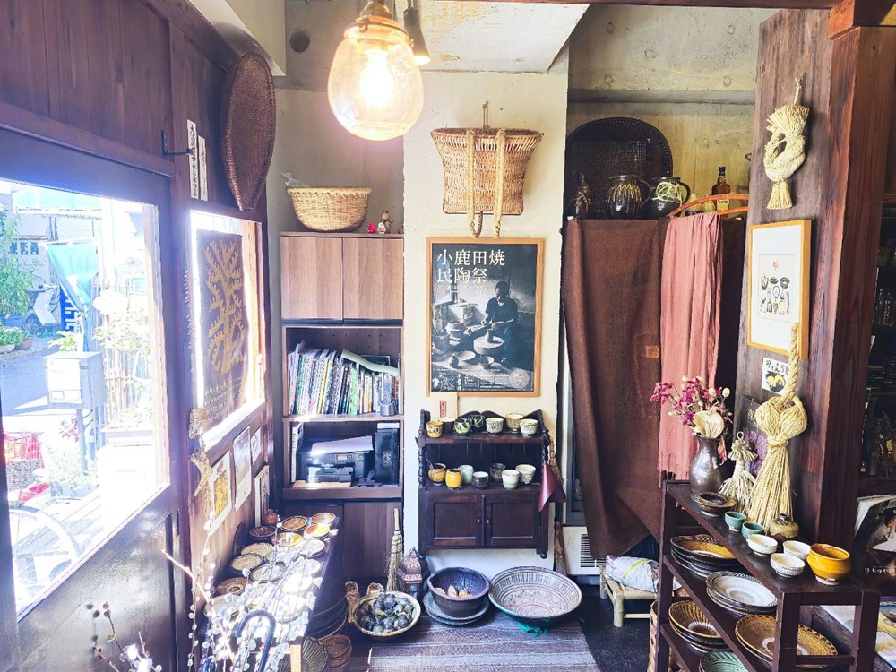 大分県日田市の山あいで、江戸時代から三百年もの長い間受け継がれている小鹿田焼(おんたやき)の専門店。井上千裕さんのポップアップショップへ向かう道中にお見かけし、雰囲気のある店構えに惹かれました。