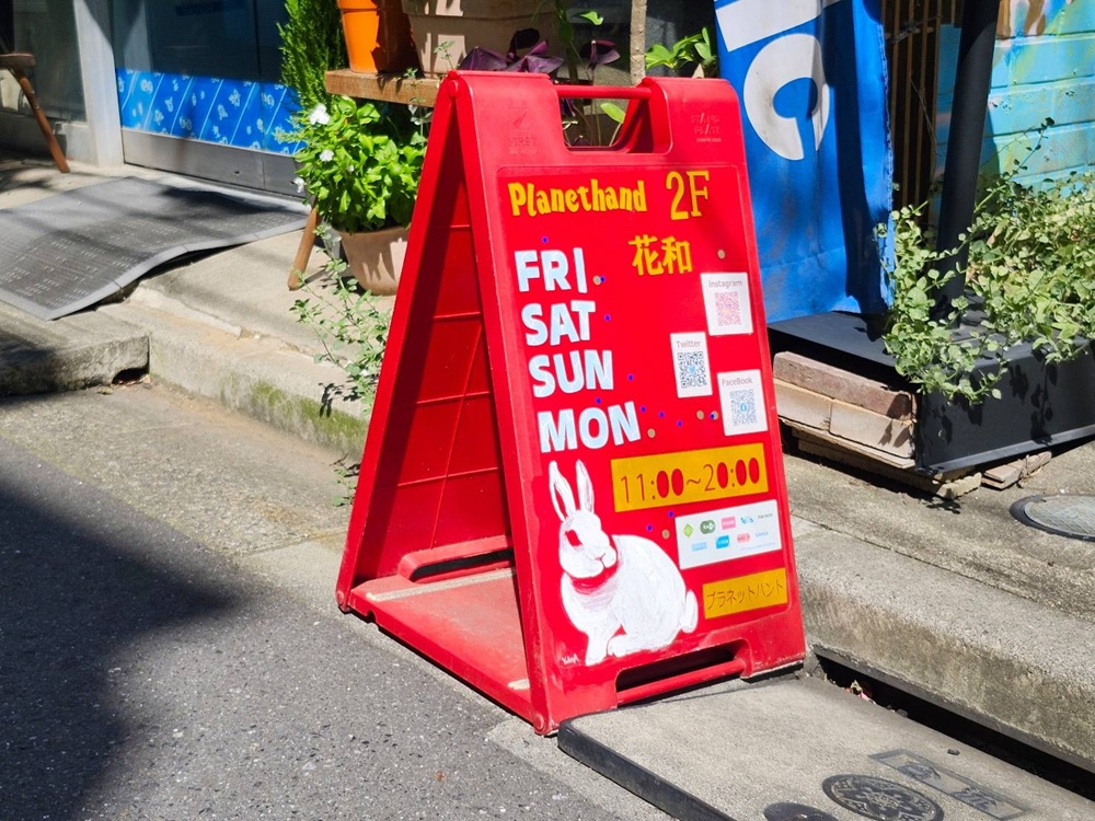 ソノモノの店舗のすぐ隣の建物、ポップでカラフルな外階段を登った先に様々な作家の作品を取り扱うセレクトショップ、planet handがあります。目印は階段下のかわいい赤い看板です。