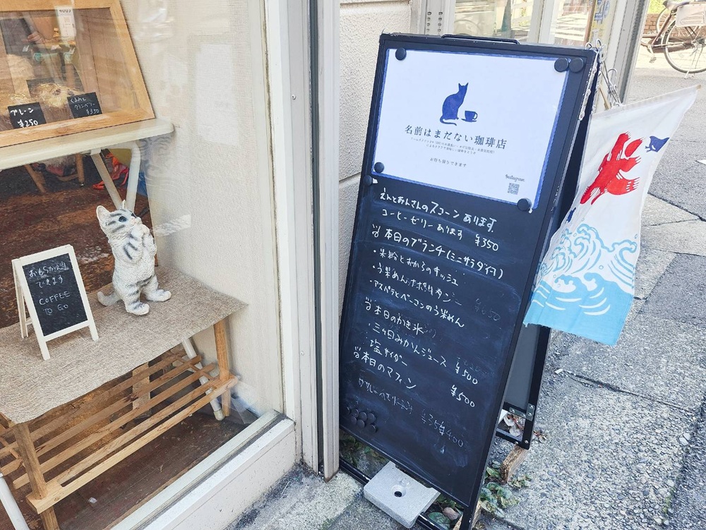 「名前はまだない珈琲店」という店名、夏目漱石の「吾輩は猫である」の冒頭が由来なのかと思いきや、話を伺うとそうではなく。店舗を構える以前、間借りで珈琲店を開く際になかなか店名が決まらず仮でつけたものだそう。間借りしている店舗が4店舗に増えた折に店舗を構えようと決断。改めて名前をつけようと考えていると、常連さんから「名前を変えてしまったら、新しい店舗を見つけられないかもしれない」と言われ、今の店名で定着したのだとか。店内の猫のモチーフは店名の後付けであり、店主さんが実際に黒猫を飼われていることから置かれているそうです。