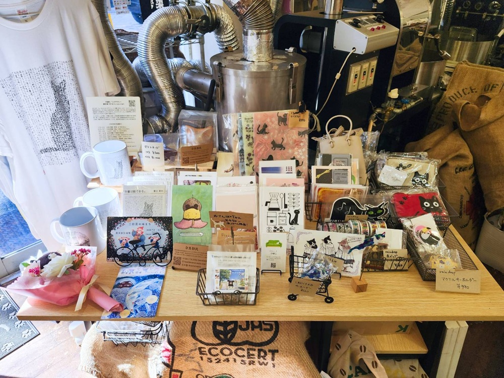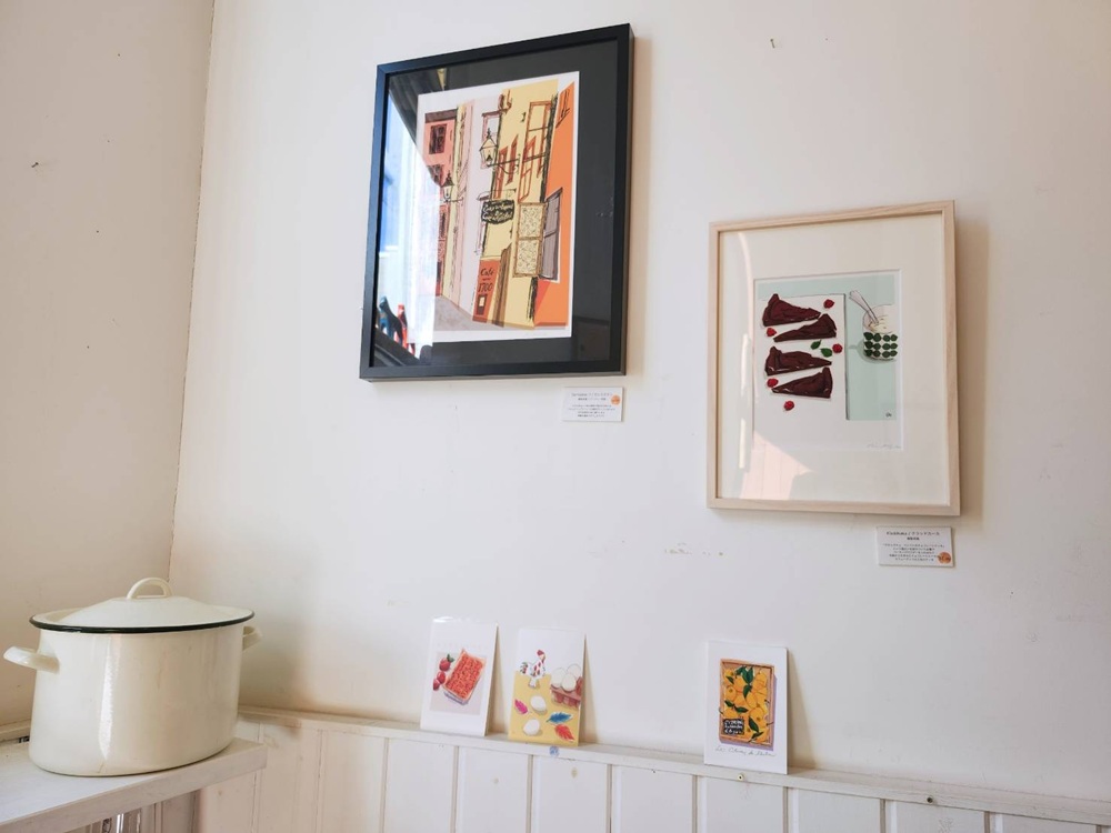 取材日は暑さの盛りにある7月。休憩と涼を求めて入ったのが、「名前はまだない珈琲店」。先ほどのplanet handが主催する「おさんぽTを作ろう展」に参加していて、作家の作品も店内で取り扱っていておすすめ!と紹介いただきました。