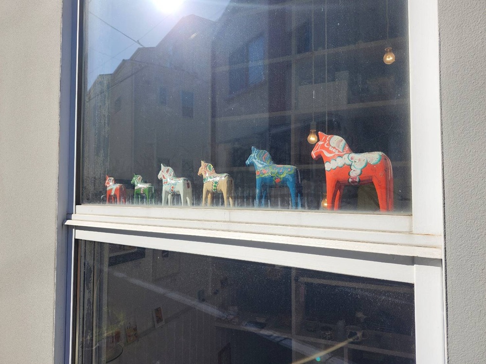 おしゃれな外観の一軒家。窓際には北欧雑貨のダーラナホースがお出迎えしてくれています。