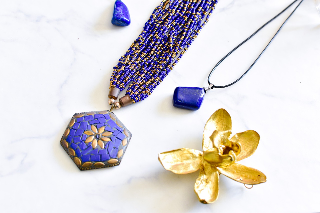 手に取って眺めているだけで何か幸せを感じる濃い色合いのラピスラズリは、