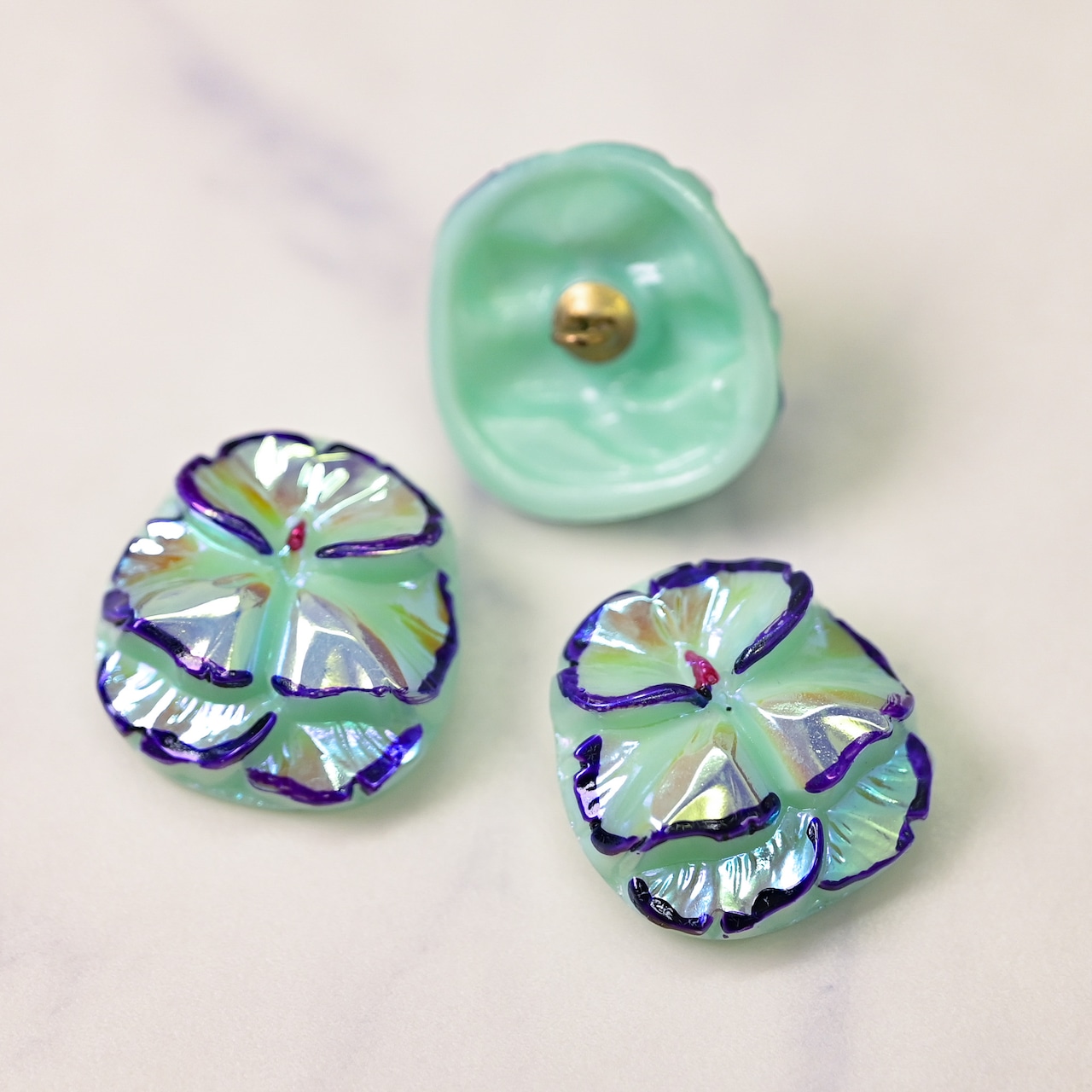 かわいらしいパンジーの形のボタン。