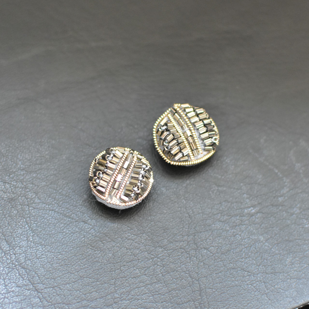 2つセット ビーズボタン インドボタン グレー