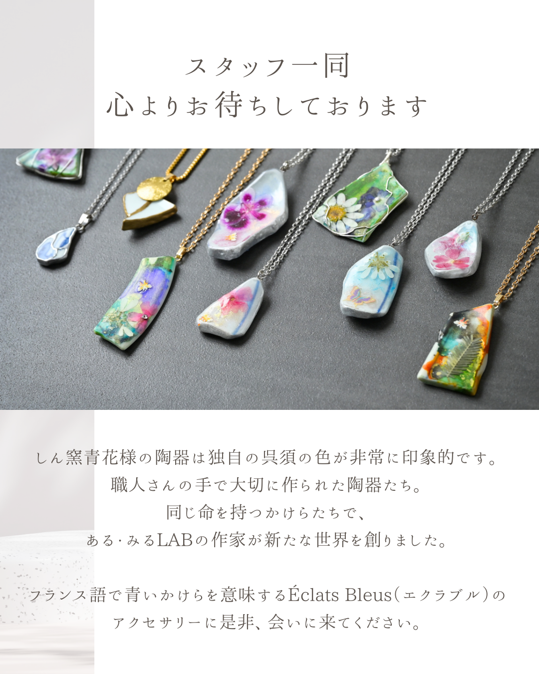 大事につくられながら、工程の中の小さな傷や欠けで器になれなかったものたちに、アクセサリーとしての新たな命を吹き込みました。