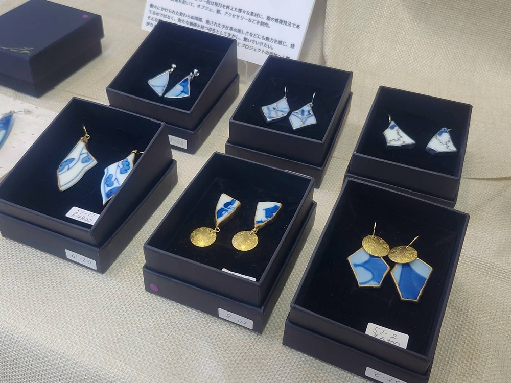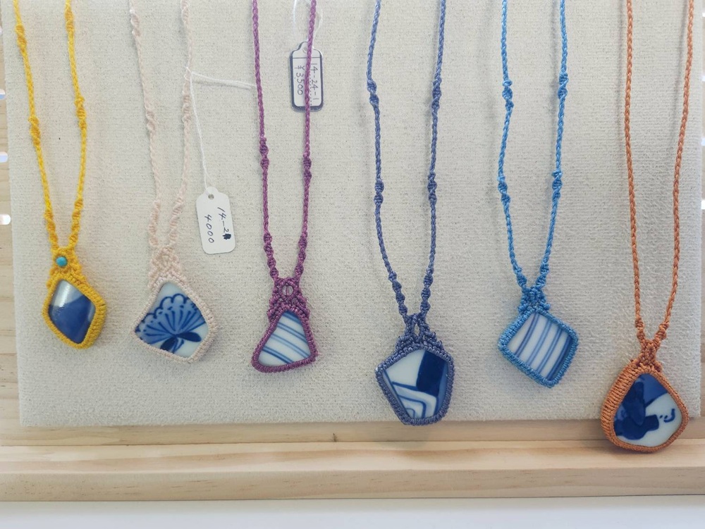 アクセサリーとして生まれ変わった陶片。作風の異なる5人のÉclats Bleusメンバーの作品をご覧ください。