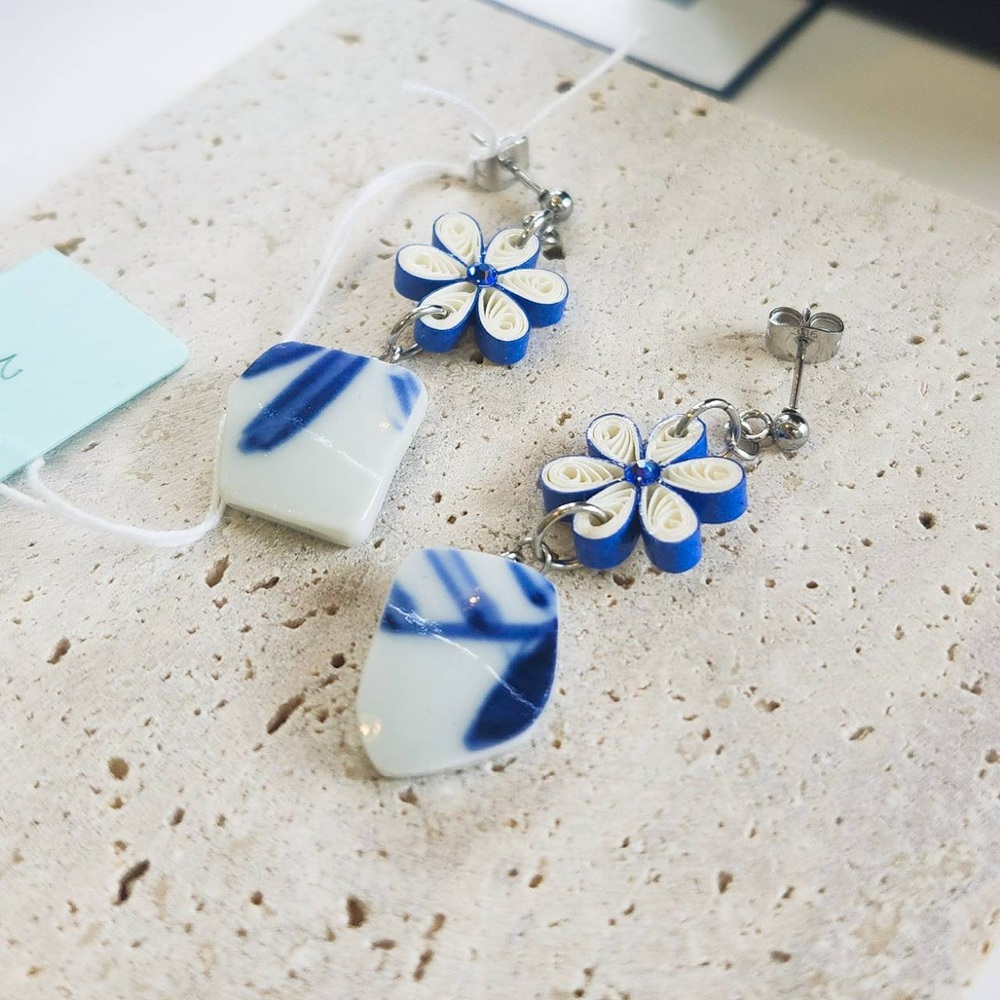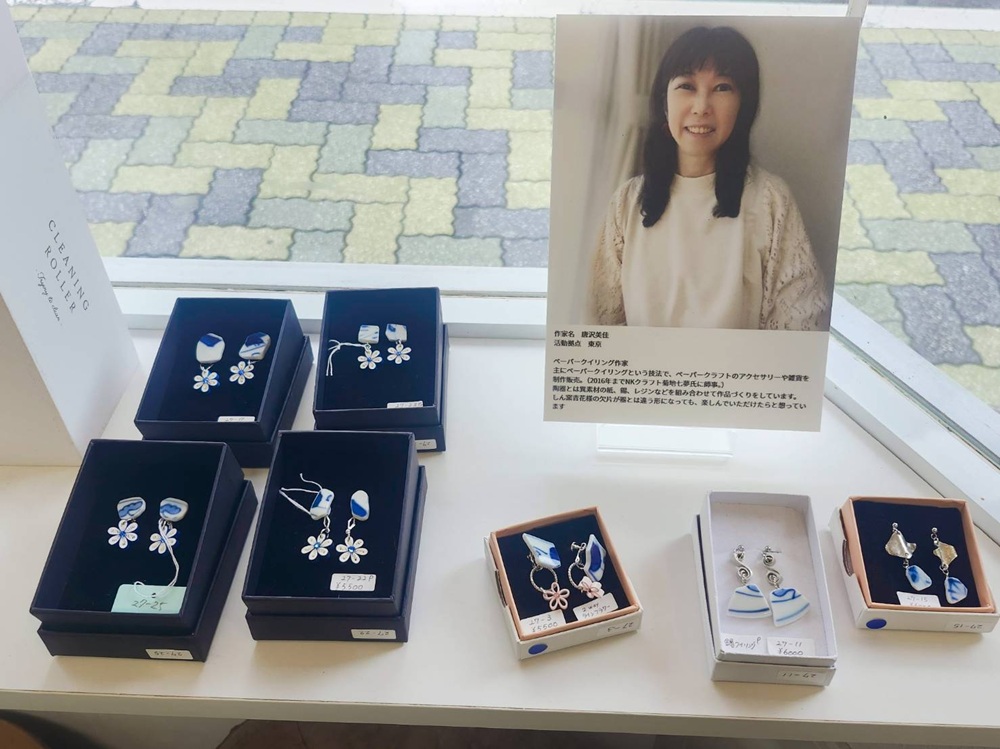 「ペーパークイリングという技法でペーパークラフトのアクセサリーや雑貨を制作しています。今回題材の陶器と異素材の紙、銀、レジンを組み合わせて制作をいたしました。