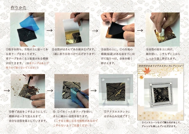 このキットは、金箔を貼り付けることで独自の作品を作り上げることができる特別な体験を提供します。
