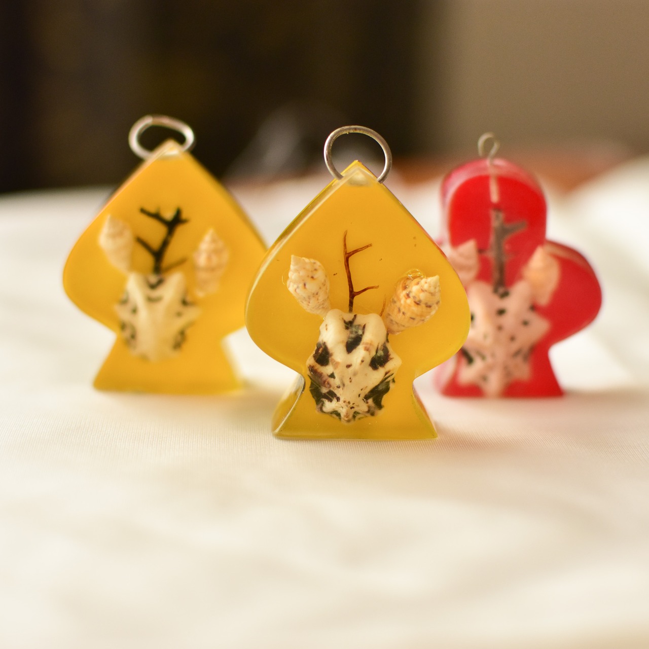 アールデコを表現したかったのか・・左右対称なモチーフが樹脂の中に