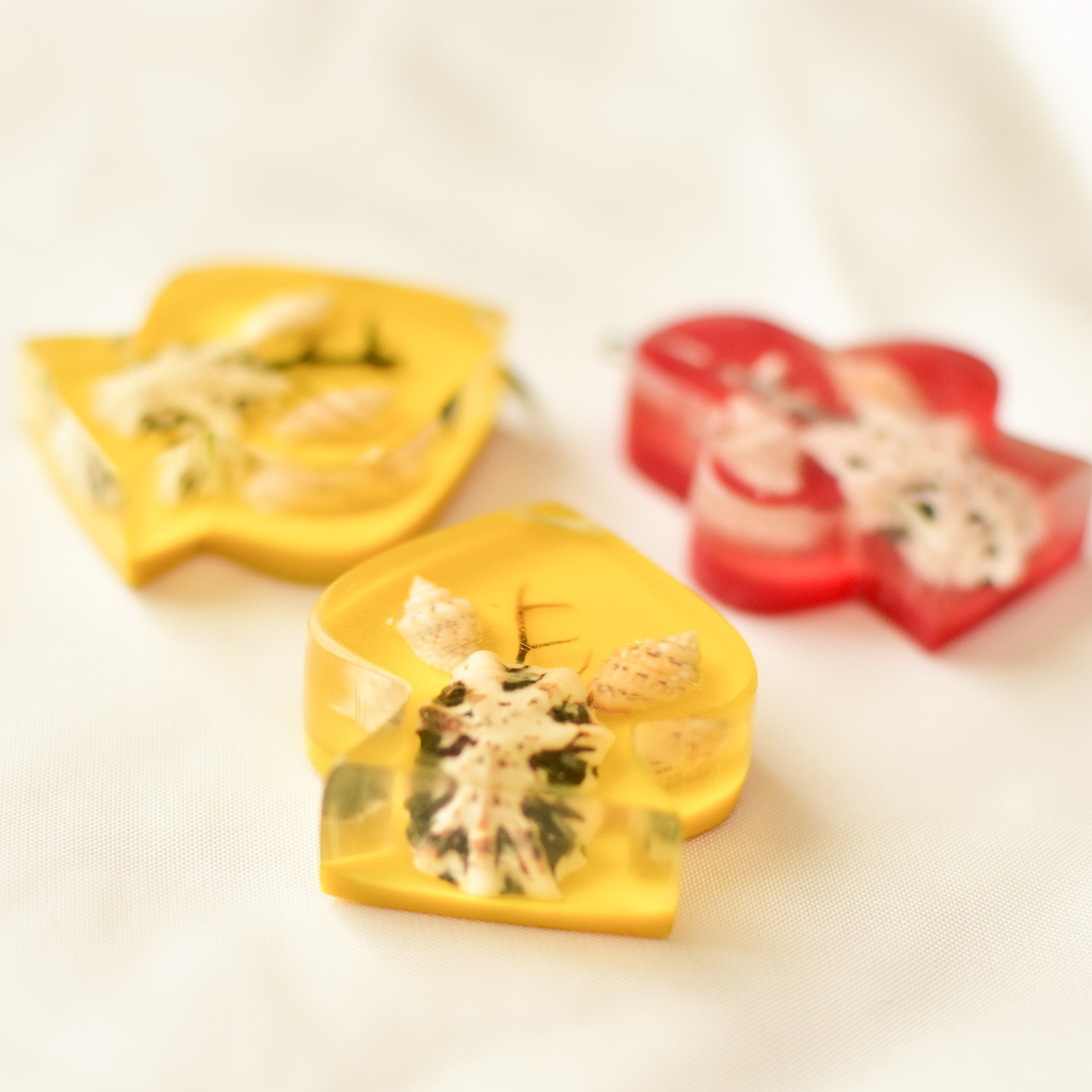 入っています。とはいえ自然の貝などを入れているため左右対称にはならずに