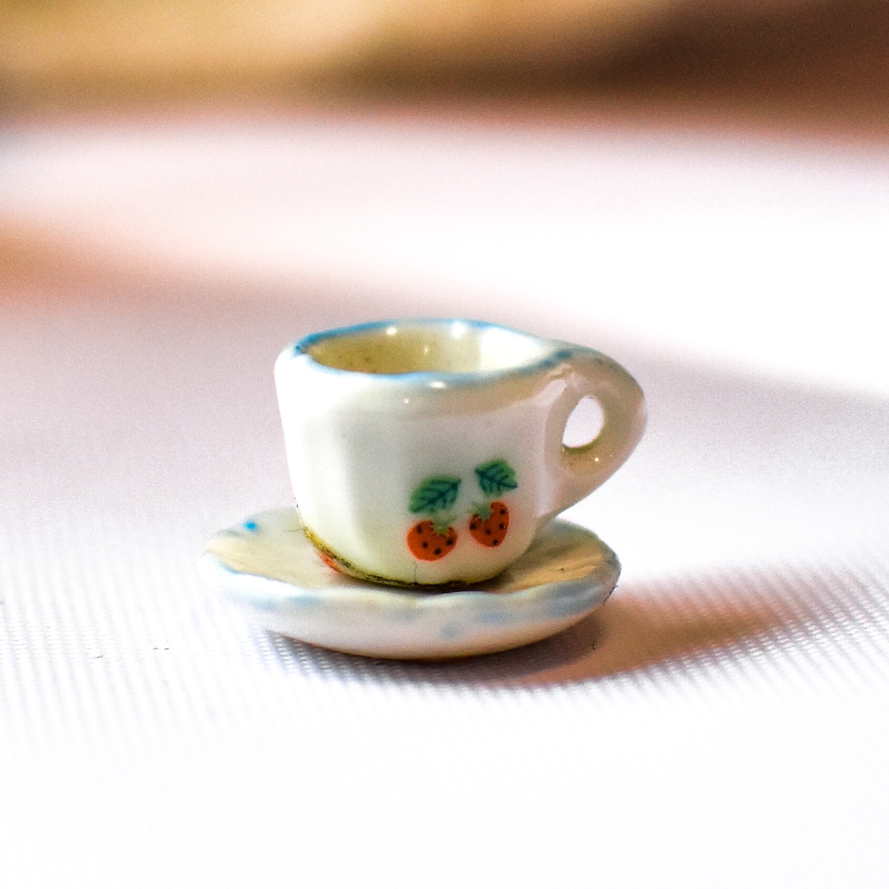 小さなティーカップ・ソーサ―付 手描き ミニチュア